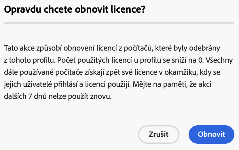Zrušení přiřazení licencí Adobe Creative Cloud
