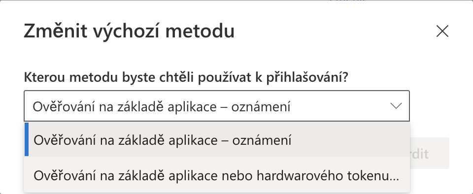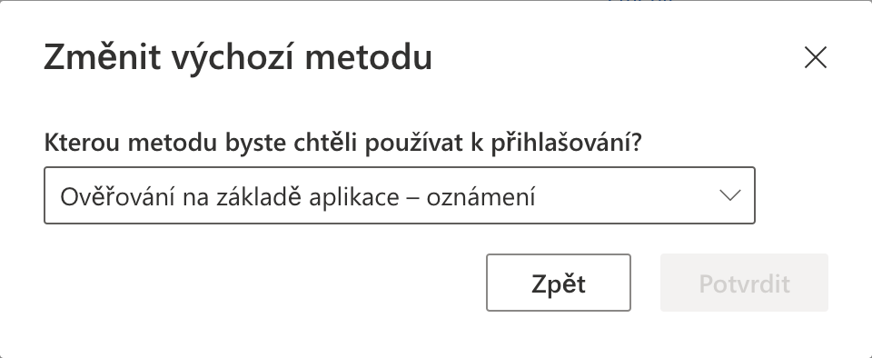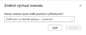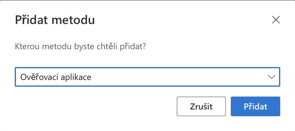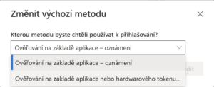 Doporučuji vybrat metodu „Ověřovací aplikace“, ale zatím můžete nastavit i starší a méně bezpečné způsoby, např. SMS…