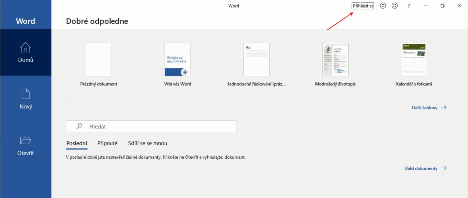- Než se začnete přihlašovat ujistěte se, že v pravé části horní lišty není jméno uživatele, ale odkaz Přihlásit se. Pokud je tam nějaké jméno, postupujte podle bodu 3, jinak pokračujte dále.