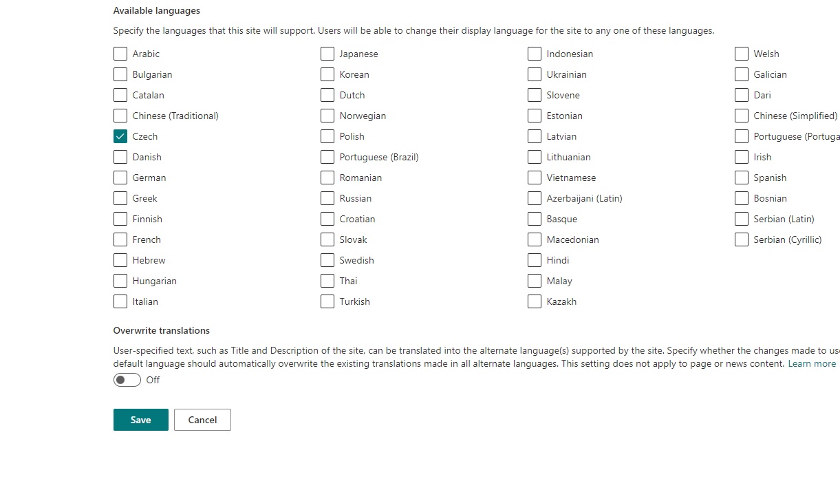 - Zaškrtneme češtinu Czech