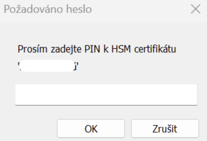 Budete vyzváni k výběru certifikátu (VCA!), k zadání PINu:
