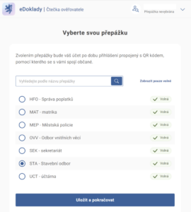 Po úspěšném přihlášení budete přesměrování do aplikace eDoklady – čtečka k výběru přepážky: