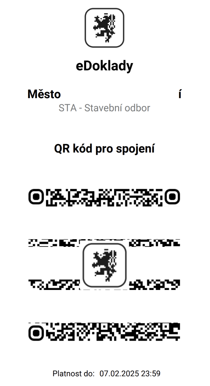 Zobrazí se QR kód s dalšími informacemi o městě/přepážce a důležité informaci, platnosti QR kódu: