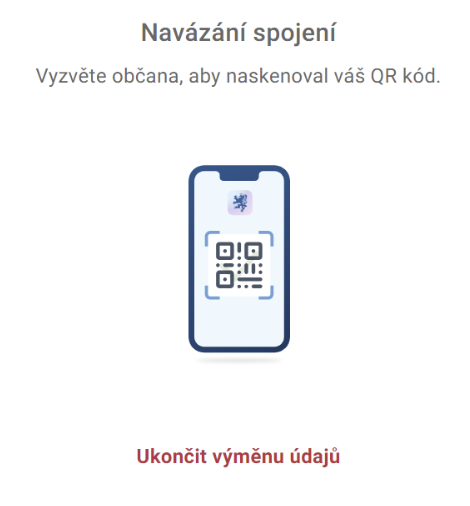 Pokračujte kliknutím na tlačítko [Zkontrolovat: …] a vyzvěte občana k naskenování QR kódu přepážky: