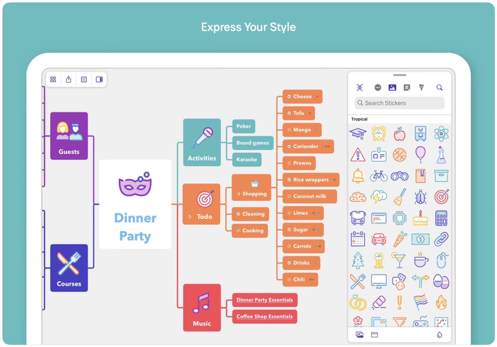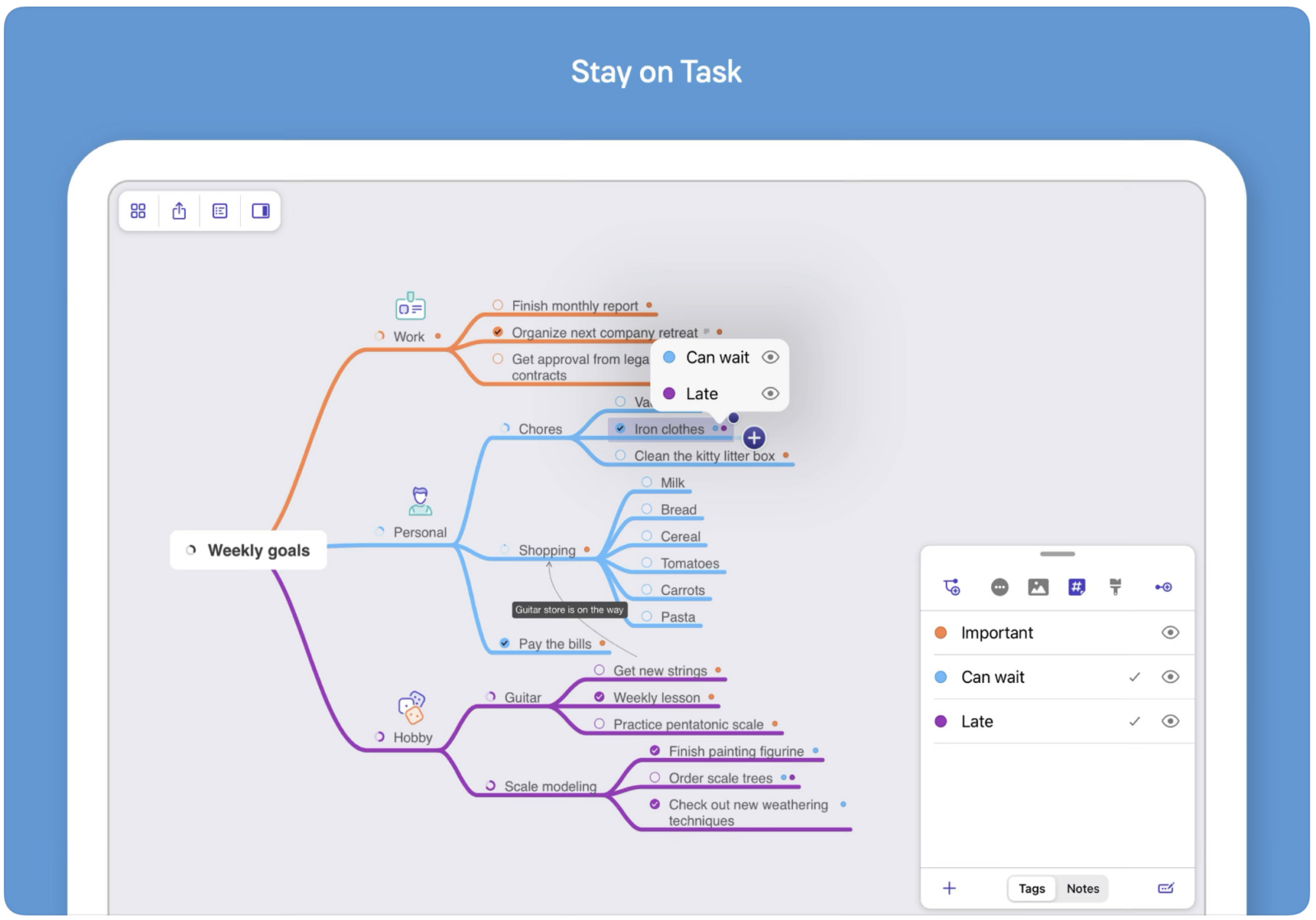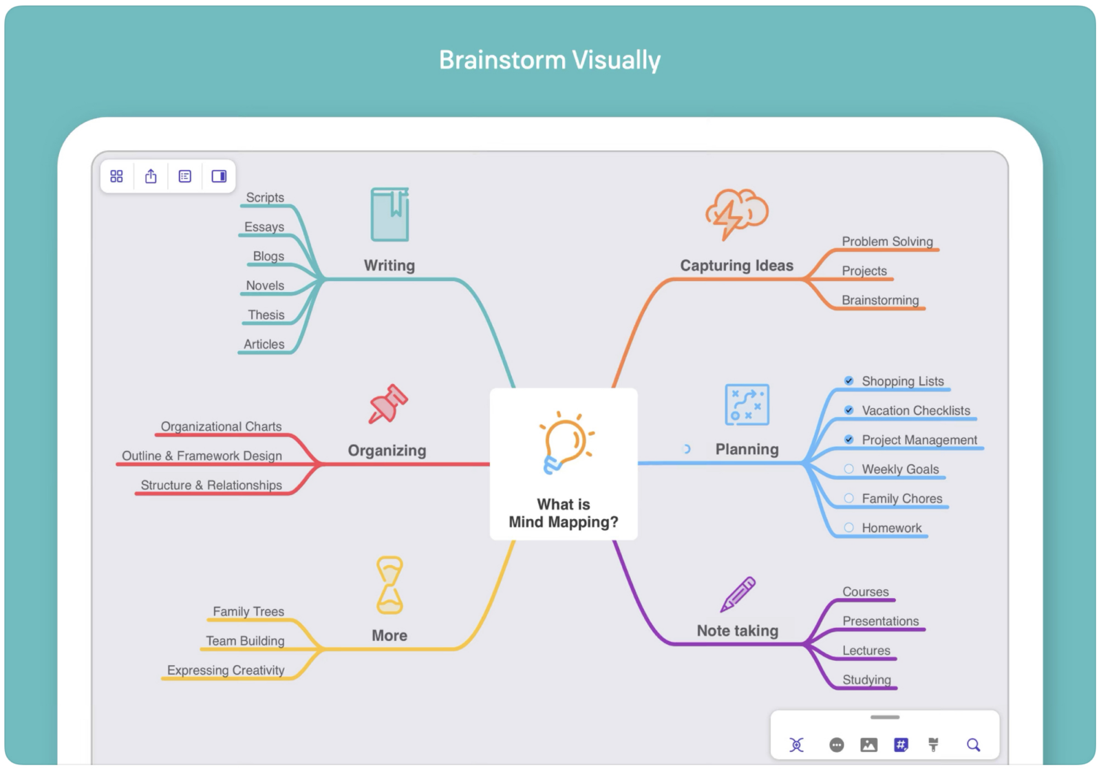 Kdo by neznal myšlenkové mapy. MindNote Vám umožňuje třídit a prezentovat své myšlenky. Pro jejich tvorbu máte spoustu nejrůznějších nástrojů.
