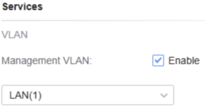 9 – nyní je potřeba management zařízení přepnout do specifické vlan. Jakmile bude nastavení uložené, ztratíte s ním komunikaci. Toto je žádoucí chování. Na kartě „Config“, v sekci „Services“ upravte nastavení „Management VLAN: [x] Enable: