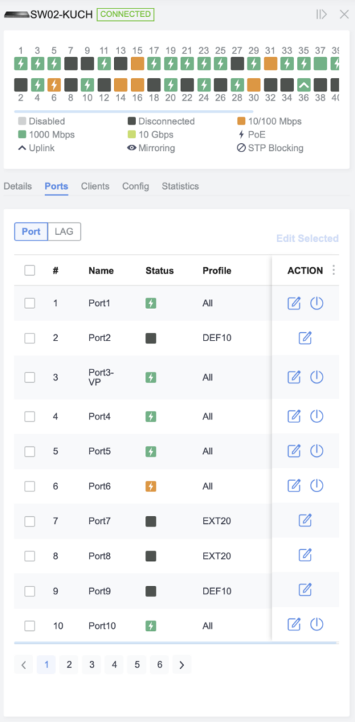 1 – Konfigurace se provádí na kartě „Ports“ konkrétního switche: