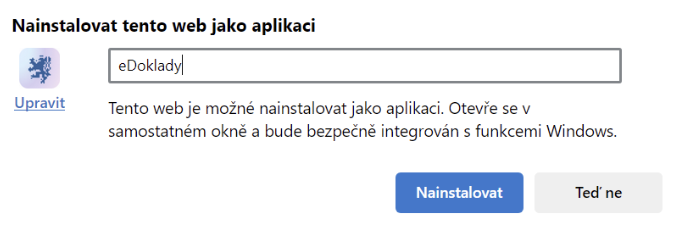 Po načtení webu klikněte na tři tečky v pravém horním roku prohlížeče, najeďte na Aplikace a vyberte položku která se zobrazí „Nainstalovat tento web jako aplikaci“: