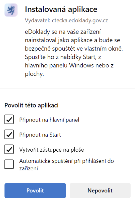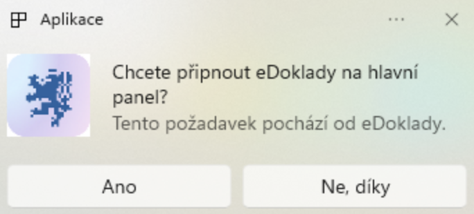 A pokud zvolíte také „Připnout na hlavní panel“, potvrďte vyskočivší okno vpravo dole:
