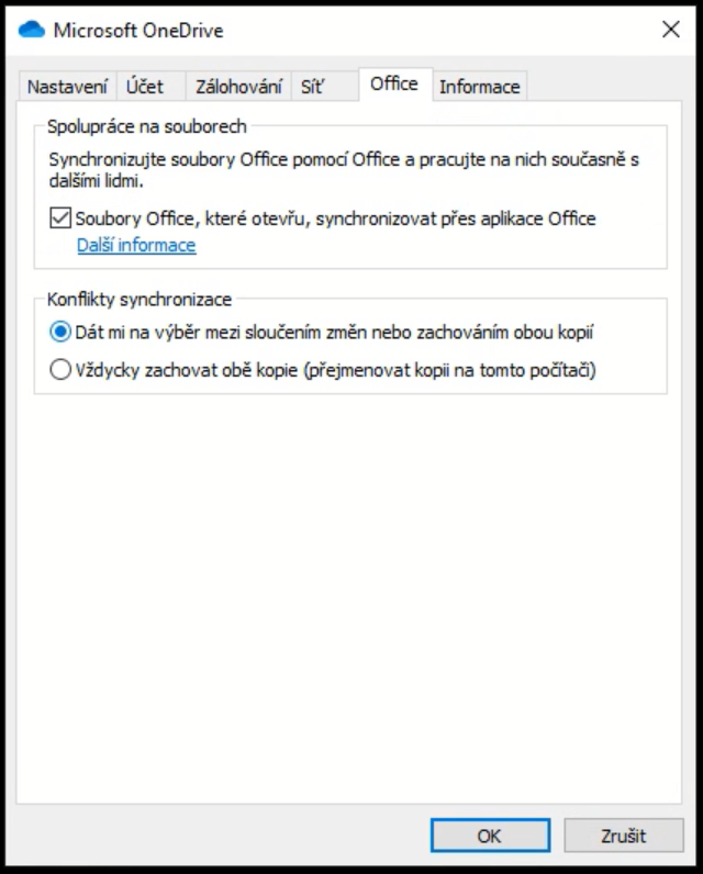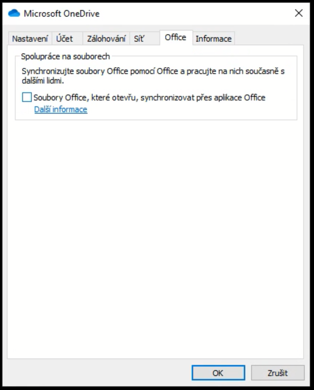 V případě, že není zaškrtnutá položka „Soubory Office, které otevřu,…“ jako v tomto případě, zaškrtněte jí: